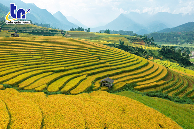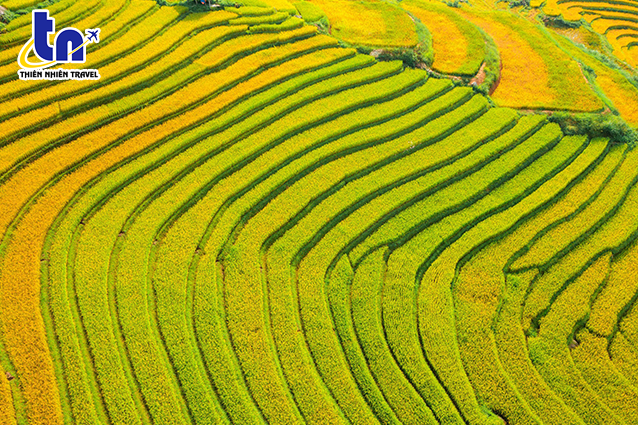 (Từng lớp ruộng bậc thang với sắc xanh mướt xen lẫn chín vàng)